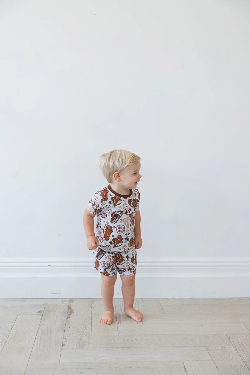 Please refer to the NEW Shorts Set Sizing in our sizing guide. Welcome to Scoots solution for hassle-free dressing! A go-to complete outfit featuring shorts with a drawstring and pockets, these sets offer both style and functionality for your little one in the softest bamboo you know and love. Made from 95% Bamboo Viscose 5% Spandex.
